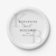 Erstellen Sie Ihre eigenen personalisierten Hochzeitspapier-Teller mit moderner Monogramm-Typografie und minimalistischem Grafikdesign in Schwarz-Weiß.