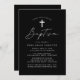 Die einfache Taufe mit einem lässigen, weißen Kalligraphieskript mit schwarzem Hintergrund ist für ein Design, das sich perfekt für eine moderne Taufe eignet. Personalisieren Sie die eleganten Taufe-Einladungen mit dem Namen Ihres Kindes und den religiösen Veranstaltungsdetails unten. Die Rückseite der Schwarz-Weiß-Taufeinladung bietet Platz für zusätzlichen Text und Fotos.