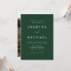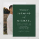 Einfache, elegante Einladungen mit einem weißen, handgeschriebenen Skript, kombiniert mit modernen Schriften vor jägergrünem Hintergrund. Personalisieren Sie die minimalistische Hochzeitseinladung mit Ihrem Namen und Ihre Hochzeitsdetails. Die Einladung kehrt sich um, um Ihr vollblütiges vertikales Verlobung-Foto anzuzeigen. Die eleganten Jäger-grünen Hochzeitsfeiern sind die ideale Wahl für moderne Hochzeiten.