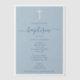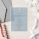 Ein wunderschönes modernes Design mit weißem Kreuz und weißer Schriftzeichen mit einer staubblauen Textfarbe. Ein religiöses Design, ideal für die Taufe eines kleinen Jungen. In der Kollektion dieses Designs kann man die passende Schreibwaren und Dekoration bewundern.