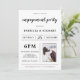 Feiern Sie Ihre Verlobung mit dieser modernen, einfachen und minimalistischen Schwarz-Weiß-Typografie, schicke Einladung, fügen Sie Ihr Paar Foto.