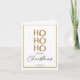 Diese elegante und moderne Weihnachtskarte besticht durch einen kühlen "HO HO HO HO" in einem auffälligen goldenen Glitzer-Stil, gerahmt durch eine schlanke, dünne Goldfolie. Die Nachricht "Frohe Weihnachten" wird in einer stilvollen Kombination aus Serif- und Script-Schriftart angezeigt und bietet eine raffinierte und festliche Begrüßung. Die Karte enthält auch Platz, um mit Ihrem Familiennamen und dem Jahr zu personalisieren, was es zu einem durchdachten und maßgeschneiderten Urlaubsgruß macht. Mit seinem sauberen, minimalistischen Design und luxuriösen Goldakzenten ist diese Karte ideal für diejenigen, die gewollt sind, eine schicke, zeitlose Botschaft zu senden, die den Urlaub fröhlich verströmt.