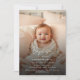 Mit dieser modernen minimalistischen Einladung, die ein weiches, weiches Skriptüberlagern auf einem hochgeliebten Baby-Foto enthält, verkünden Sie eine wunderschöne Taufe. Das gepflegte Design hebt das Bild Ihres Babys hervor, mit elegantem Skripttext, der eine persönliche Touch hinzufügt. Diese Einladung ist einfach und elegant und eignet sich perfekt für Familien, die einen zeitgemäßen und herzlichen Weg suchen, Liebende zu einem besonderen Ereignis einzuladen.
