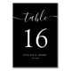 Mit seinem eleganten weißen Drehbuch auf einem fett schwarzen Hintergrund bietet diese Tischnummer eine moderne minimalistische Ästhetik. Ideal für einen schicken Hochzeitsempfang. Matching-Elemente verfügbar.