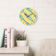 Moderne Minze, grün gelb und schwarz Retro Große Wanduhr