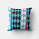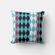 Dieses türkisfarbene, rote, schwarz-weiße Retro-Rautenmuster ist ein großes Kissen im Stil der Mod-Möbel aus dem Mittelalter. Was für ein lustiger Pop in Ihrer Zuhause.