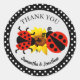 Moderne modische Ladybug Danke klassische Rundaufkleber. Elegantes, schönes Design. Mit dem einfach zu bedienenden Zazzle-Menü; meine Designs können Kunden inspiriert und ermutigen, ihre eigenen einzigartigen Einzelstücke zu kreieren. Stil, Größe und Farbe der Schriftart können geändert werden. Gutes Geschenk für jeden und für jeden Anlaß. Matching-Elemente verfügbar.