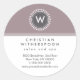 Ein sauberes, zeitgenössisches Design, das für viele Arten von Unternehmen wie Salon, Massagetherapeut, Ernährungsberater, Wellness-Experte, Einzelhandel oder Großhändler funktionieren kann. Ihr Monogramm sitzt auf einem modernen Ornament gegen Mauve. Großer Werbe-Aufkleber, der als Umschlag oder als Siegel verwendet werden kann, oder Verwendung bei Käufen oder Rechnungen von Kunden. Erhältlich in alternativen Farben mit passenden Produkten.