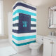 Freuen Sie sich auf ein modernes, kühn blaues und aquamarines Streifenmuster im Bad. Fügen Sie Ihr Monogramm zum Duschvorhang hinzu und machen Sie es einzigartig. Dieses sommerliche, nautische Design wird Sie das ganze Jahr über in eine Urlaubsstimmung versetzen.