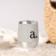 Moderne Monogram Elegant Linen Look Initial Name Thermal Wine Tumbler. Einfache Anpassung einfacher und klassischer Typografie Monogramm. Perfekte mit Monogramm Namensgeschenkidee! Hinweis - Bei der Erstellung dieses Entwurfs oder der Herstellung dieses Gegenstands wird kein wirkliches Leinen verwendet.