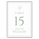 Moderne Monogram Elegant Script Sage Green Wedding Tischnummer