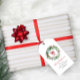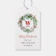 Dieses Watercolor Modern Monogram Greenery Red Berry Wreath Holiday Gift Tag, enthält einen Kalligraphieskripttext mit dem Titel "Frohe Weihnachten". Perfekte Geschenkmarke für den Urlaub.