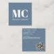Moderne Monogram Initials QR Code Dusty Blue Gray Quadratische Visitenkarte