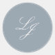 Moderne Monogram Simple Script Dusty Blue Wedding Runder Aufkleber