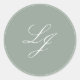 Moderne Monogram Simple Script Sage Green Wedding Runder Aufkleber