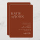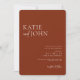 Mit dieser rustikalen Einladung mit Kalligraphie-Schriften und Terrakotta-Hintergrund laden Sie Ihre Freunde und Lieben zu Ihrer modernen Hochzeit ein. Personalisieren Sie die Einzelheiten der Hochzeit und Monogramm auf der Rückseite.