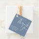 Moderne Hochzeitsgeschenketiketten in staubblauer Farbe mit anpassbarer Textvorlage. Krawatte auf Gastgeschenke Hochzeiten oder Geschirr während Ihrer Hochzeitsfeier oder Ihres Festes.