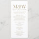 Modernes Monogram White and Gold Wedding Programm. Stilvolles, elegantes Design mit antikem goldfarbenem Text auf weiß. Front beinhaltet die Initialen des Paares, das Hochzeitsdatum, die Dankeschön Sektion und das Zeremonieprogramm. Auf der Rückseite befinden sich die Namen der Hochzeitsfeier. Personalisieren Sie mit Ihrem eigenen Text vorne und hinten. Alle Farben, Texte und Schriftart können mit den Tools von Zazzles Personalisierungs- und Anpassungsmenüs individuell angepasst werden. Besuchen Sie unseren Shop, Austen & Grace, um die komplette Hochzeitssuite, passende Produkte und vieles mehr anzuschauen, und kontaktieren Sie uns, wenn Sie Hilfe benötigen contact@austenandgrace.com