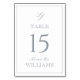 Moderne Monogramm Elegantes Script Dusty Blue Wedd Tischnummer