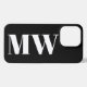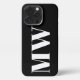 Individuell, personalisieren Monogramm, Initialen Buchstaben Schwarz-Weiß einfachen minimalistischen modernen eleganten klassischen schicken stilvollen iPhone Gehäuse. Anpassbarer weißer Text, schwarzer schlichter Hintergrund.