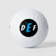 Verlieren Sie nie wieder Ihren Ball mit diesen dreifachen Monogramm-Golfbällen. Dieses Design zeichnet sich durch einen modernen Schriftart in Weiß und Blau vor einem schwarzen Hintergrund aus.