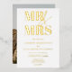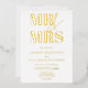 Weißer, moderner Mr. and Mrs. typografisch auf schwarzer Deckkraft überlagern Foto schick Hochzeit mit echter Goldfolie , perfekt für elegante, luxuriöse Hochzeiten, Herbst- und Winterhochzeiten Themen, hochladen 1 Foto.