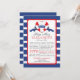 Moderne rote, weiße und blaue Wasserdusche lädt zu einer geschlechtsneutralen Dusche ein. Unsere Ships Ahoy zeitgenössische Junge oder Mädchen Dusche Einladung verfügt über eine rot-weiße Streifen Herz Buoy mit einem blauen Banner mit dem Wort baby auf ihm. Der Hintergrund ist ein kühner, hellblau und weiß horizontaler Streifen. Dreh die Einladung für einen passenden Streifen zurück. Besuchen Sie unseren Shop, um diese für eine Mädchen Babydusche und eine Jungs Babydusche zu sehen.