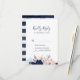 Diese moderne, blumengeschmückte RSVP Karte eignet sich perfekt für eine Kreuzfahrt oder eine Hochzeit am Strand. Das skurrile Design ist in Rosa und Marineblau gehalten, die Blume sind mit goldgelben Sternenakzenten versehen und verleihen dem Hotel ein angenehmes Ambiente.