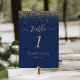 Moderne Navy Blue Gold Glitzer Edge Wedding Tischnummer