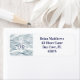 Moderne Marine und weiß nautische Anker Monogramm Adresse Rückgabeschild. Ein weißer Anker sitzt auf einem Marineschwellen-Muster. Ein weißes Seeseil umkreist Ihren Anfang. Personalisieren Sie den nautischen Rahmen mit Ihrem Initial in Ihrem designten Schriftart und Farbe. Textinformationen können personalisiert sein, um Ihren Daten anzupassen.