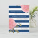 MODERNE Navy Wide Stripes Pink Peony Blume Floral Einladung