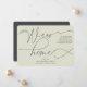 Eine einfache, aber schöne Art, verkünden Sie Ihren Umzug. Design mit einem modernen, hellgrünen Hintergrund und einem Header, der in einer Kombination aus trendigen Schriftart "Wir haben eine neue Zuhause" steht. Personalisieren Sie Ihre Adresse und Namen auf der Vorderseite, und auf der Rückseite können Sie eine weitere Nachricht an Freunde und Familie hinzufügen.
