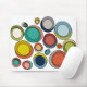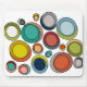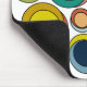 Dieses Mauspad hat ein modernes Design von Gruppen von drei Ovalen in Retrofarben, verteilt auf das Design.
