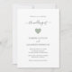 Moderne Hochzeitseinladung mit einem schlichten Design mit einem niedlichen Herz in Salbei grün zusammen mit der "Hochzeit von" in einem eleganten Drehbuch mit Wimpern. Diese lustige Einladung zum Hochzeitsfeiern ist ideal für eine Hochzeit im Frühling oder Sommer.