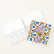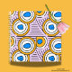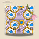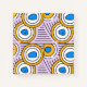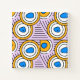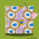 Niedliche, farbige Grafik in abstraktem Muster, blau, lila, gelb und weiß.