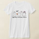 Niedliches und modernes Halloween-Shirt mit 3 Gespenstern, Spinne, Fledermaus und Kürbisgewürzgetränken. Phrase sagt "Spooky Season is Here"