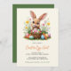 Freunden und Familie eine lustige Ostereier-Jagd zu ermöglichen, lädt mit dieser bezaubernden Einladung zu einem niedlichen Hasen ein, der einen Korb mit bunten Ostereiern, Karotten und Frühlingsblumen hält. Diese Karte ist perfekt für Osterfeiern, sie ist wunderschön gestaltet und hebt eine fröhliche Frühlingsästhetik hervor. Personalisieren Sie es mit Ihren Veranstaltungsdetails wie Datum, Uhrzeit, Ort und UAWG. Ideal für Ansammlungen, Gemeindefeiern oder Ostern-Party.