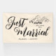 Modernes Just Married Wedding Reception Banner ist ein rustikales Hochzeitsfeierbanner für Ihr Hochzeitsempfang Party im Tahoer See oder überall mit Bergen. Dieses elegante "Just Married"-Design macht den Spaziergang zum Pärchen des Ehepaares. Perfekte Hochzeitsvorräte für die Hochzeitsdekoration der Hochzeit in Urlaubsort in den Bergen oder in den Wildwäldern. Passen Sie den Geist der Natur mit dem Namen Braut und Bräutigam, dem Ziel und dem Jahr der Hochzeit. Egal ob Sie am Lagerfeuer glänzen oder in der Wildnis wandern, diese Kollektion ist perfekt für Sie.