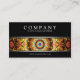 Stilvolle moderne Visitenkarte mit einem größtenteils schwarzen Hintergrund. Zwischen dem Silber stehen farbige Linien die Details einer gelben und braunen Mandalashow, einen netten Pop der Farbe bereitstellend, diesen Kontakt aufnehmend zu kardieren heraus von der Menge. Klicken fertigt besonders an, um mehr Kontrolle über Schriftartwahlen und den Gebrauch von Raum für Text zu haben.