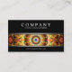 Stilvolle moderne Visitenkarte mit einem größtenteils schwarzen Hintergrund. Zwischen dem Silber stehen farbige Linien die Details einer gelben und braunen Mandalashow, einen netten Pop der Farbe bereitstellend, diesen Kontakt aufnehmend zu kardieren heraus von der Menge. Klicken fertigt besonders an, um mehr Kontrolle über Schriftartwahlen und den Gebrauch von Raum für Text zu haben.