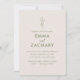 Ein minimalistisches und modernes olivgrün und grau alles-in-einem Hochzeitsempfang, mit einfachem und Skript-Schrift, und ein Blumenelement. Passen Sie Ihre Hochzeitseinladung an und übernachten Sie mit Hochzeitsunterkunft und Empfang-Infos auf der Rückseite.