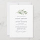 Dieses moderne Design besticht durch einen Single-Olivenzweig und wunderschöne gemischte Schriftart. Die saubere, puristische Wasserfarbe und die gedämpften Grün-Töne sind perfekt für eine elegante klassische Hochzeitsankündigung. Teil einer eleganten Kollektion auf Trend.