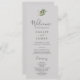 Dieses moderne Olivenzweig graue Hochzeitsprogramm ist perfekt für eine Hochzeit. Das rustikale und dennoch elegante Design besticht durch einfache botanisch-grüne Blätter und schwarze Oliven auf einem kleinen Ast mit klassischem mediterranem Ambiente. Geben Sie den Namen der Braut und des Bräutigams, das Datum und den Ort der Hochzeit, Dankeschön-Nachricht, Dienstordnung, Brautparty und ein optionales "in Loving Memorial" ein.