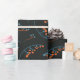 Moderne festliche Orange- und Blaubeeren-Illustration auf schwarzem Hintergrund, gemustertes Verpackungspapier. Ihre Geschenke heben sich von der Menge ab, wenn sie in diesem schönen und originellen Papier eingewickelt sind.