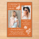 Moderne Orange White Butterfly Graduation Party Akryllische Einladungen mit dem einfachen Text "Glückwunsch to the Grad" Akzent mit einer Blume und Schmetterlinge mit zwei Ihrer Lieblings-Fotos und personalisiert mit Namen und Graduation Party Details in eleganten weißen Schrift Typografie. Personalisieren Sie diese, indem Sie den Text in den bereitgestellten Textfeldern bearbeiten und Ihre bevorzugten Foto hinzufügen. Designed by ©2023 Evco Studio www.zazzle.com/store/evcostudio