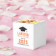 Moderne Graduiertenboxen verfügen über ein Senior Foto, eine Graduiertenkappe und ein einfaches Typografie-Design, das mit dem Namen und der Schule des Absolventen personalisiert werden kann. Weiße Hintergrundfarben sowie orange und schwarze Textfarben können an die Schulfarben oder Party angepasst werden.