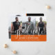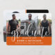 Teilen Sie die Freude eines Gymnasiums oder Uni-Abschlusses mit individuellen 4 Foto Collage orange, schwarz und weiß Ankündigungen. Die Bilder und alle Formulierungen auf dieser Vorlage sind einfach zu personalisieren mit allen Details Ihrer Wahl, wie Party Einladung-Infos, Eltern-Namen, besondere Ehren, Studientitel, Lieblings-inspirierendes Zitat, Kontaktinformationen oder Zukunftspläne des Absolventen. Alle Farben können mit dem Zazzle Design Tool angepasst werden. (IMAGE PLACEMENT TIP: Eine einfache Möglichkeit, ein Foto genau so zu zentrieren, wie Sie es gewollt haben, ist es, es einzuschneiden, bevor Sie es auf die Zazzle-Website hochladen.) Das Design aus orangefarbenem, weißem und schwarzem Streifen zeichnet sich durch moderne Skriptkalligraphie mit einer Mörtel-Kappe, elegante klassische Serifentypografie und vier Fotos Ihrer Wahl aus, wie Seniorenbilder oder Bilder aus der Anlaufzeremonie. Diese modernen Abschluss-Karten, die sowohl als gedruckte als auch als Download-Ankündigungen erhältlich sind, sind eine stilvolle Möglichkeit, um mit Freunden und Familie einen besonderen Tag zu feiern. Herzlichen Glückwunsch an den Absolventen!