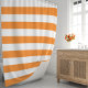 Mit diesem modernen Duschvorhang aus orangefarbenen und weißen Streifen in den Wänden können Sie Ihr Bad auf den neuesten Stand bringen. Die durchsichtigen Streifen sorgen für eine stilvolle und zeitgemäße Touch, die sich perfekt für ein angenehmes Bad eignet. Dieser aus hochwertigem Stoff gefertigte Vorhang ist haltbar und leicht zu pflegen, was ihn zu einer großartigen Wahl für ein elegantes und modernes Badezimmer macht.
