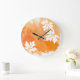 Moderne orangefarbene Aquarellspritze und Blätter Große Wanduhr