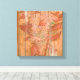 Moderne orangefarbene Blütendrucke auf gestreiftem Leinwanddruck